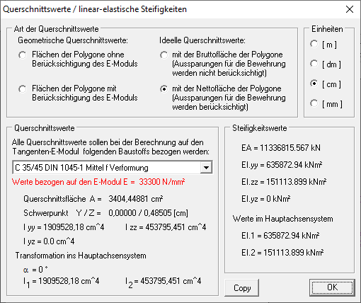 Dabei können einerseits nur die reinen Flächenwerte berechnet werden. Besteht ein Querschnitt